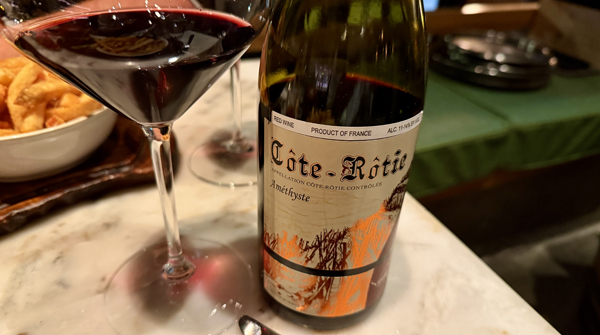 As with the previous vintages, the 2018 Bernard Levet Côte-Rôtie cuvée Améthyste, 100% Syrah, is very opulent and luxuriously textured, again it is surprisingly open knit in a departure in style from most of the Levet wines, but still very much a terroir driven wine and absolutely delicious with beautifully layered dark fruits, subtle savage, a light dose of spice, pretty floral detail and excellent length. Levet’s importer Rosenthal says of the Améthyste, that it is a wine that is less severe, gripping and tight in nature and more open, which is obvious here in this vintage, but welcome, especially as I had it none decanted and with a causal meal. Pretty classic stuff for a poised and well made Côte-Rôte with a smooth medium/full bodied palate, giving loads of rich chocolaty dark boysenberry, damson plum, sweet cherry and blueberry compote fruits, again backed up and accented by violet florals, cedary wood, peppercorns, black olive, dried herbs, licorice and creme de cassis. Levet fermented the Améthyste with about 60% whole bunches, with no Viognier, and the lovely dark purple/garnet hued and mineral toned Améthyste, wonderfully inviting in the glass, is an elegant and seamless Côte-Rôtie to drink sooner versus later. This savvy 2018 is a bit fresher than the more ripe 2017 and there was a sense of lift and precision that really made it go fabulously well with late night Wally’s burger and fries in the cool Santa Monica location, all of which I highly recommend!