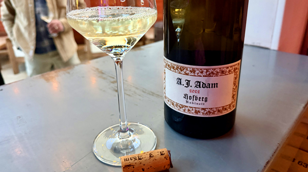 The Weingut A. J. Adam, as mentioned before, is led by Andreas Adam (who formally worked at Heymann-Löwenstein, after studying at Geisenheim) that has become star in the middle Mosel region, not far from Piesport and is blessed with fabulous cru plots in Dhron, like the Hofberg. He and his sisters Barbara and Elisabeth form a youthful team crafting beautiful naturally styled wines using native fermentations and without additions of any kind to showcase their distinctive terroirs. For the off dry and lighter wines, like this one, sourced from the Grand Cru Dhron Hofberg vineyard, with mature 50 plus year old vines that dig into blue slate (Devonian origin) soils, along with some clay and quartzite, get fermented and raised in exclusively stainless steel tank, showcasing purity and transparency. This 2022 was particularly brilliant from magnum and it should drink well for another 5 to 7 years with ease.
