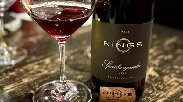 The smoky, slightly reductive and brilliant ruby gemstone hued Rings estate Pinot Noir is really hitting its stride with gorgeous silken layers of black cherry, red currant, plum and berry fruit, along with stony and spicy accents, as well as subtle wood framing, delicate floral notes, loamy earth, bergamot tea and candied orange. This medium bodied and elegant Pinot Noir could easily fool me into thinking it was a Nuits-St.-Georges or the like, such is the charm here in this Rings effort, and just the touch of evolution and textural finesse make for a confident and rewarding wine. As noted here, German Spätburgunder or Pinot Noir is reaching new heights and with the price of top Burgundy, it is for sure a place to find some excellent wines, such as those by Friedrich Becker, also here in the Pfalz, Caroline Diel at Schlossgut Diel in the Nahe, Gunter Küntzler at Weingut Küntzler in the Rheingau, Meyer-Näkel in the Ahr, one of my all time favorites, and August Kesseler, who’s awesome Assmanshausen Höllenberg GG is legendary! Rings has joined the party and at this price, I highly recommend grabbing a few extra bottles to put away for another 5 to 10 years, as I think it has some aging potential as well with the depth and structure it is showing. Coming from sustainable vines, with all estate-grown grapes from Rings vineyards in Kallstadt and Freinsheim, the Pfalz Spätburgunder saw a short maceration the crushed grapes went through fermentation with all wild yeasts. The winery says that the small-sized berries, 100% de-stemmed, from French clones, add structure and density, as displayed in the glass. The 2021 Rings Spätburgunder was aged in reused French barriques for 12 months and as the winery adds there was No fining and no filtration to allow for every nuance to show through here.
