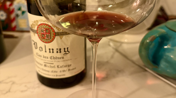 This wine absolutely surprises for its freshness and elegance, coming from an extremely hot year, and has aged beautifully, proving terroir and commitment to working with nature can overcome some of the effects of a difficult year. I have always admired Lafarge, but this 2003 Clos des Chênes really impressed me with its mature color, aromas and silky black cherry, red berry and plum fruited rich palate of flavors and the precision of the crisp details, dried rose petal florals, tea spices, sassafras, mineral tones, acidity and subtly of wood framing. Tis beautifully drinking and textural Burgundy comes from a walled vineyard, situated at the intersection of the best Premiers in Volnay, where Clos des Chênes, Les Caillerets, Taille Pieds, and En Champans sit. The plots are on mainly a south-facing slope, with a shallow covering of small stones, gravel and loose dirt with classic red clay over limestone soils. These highly sought after Lafarge wines are the pride of the Côte de Beaune, and especially Volnay, it is a tough get these days to find this Clos des Chênes, so I was thrilled to get a chance to try one, with age, and I’m again grateful for my friend Alex Lallos of No Limit Fine Wine, who shared this one. Just beginning to show a gentle brick on the edges, this wine is still in great shape, but it is prime time to to enjoy it now, which I certainly did.